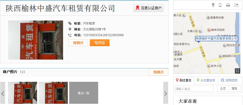 百度商戶地圖展示-陜西榆林中盛汽車租賃有限公司
